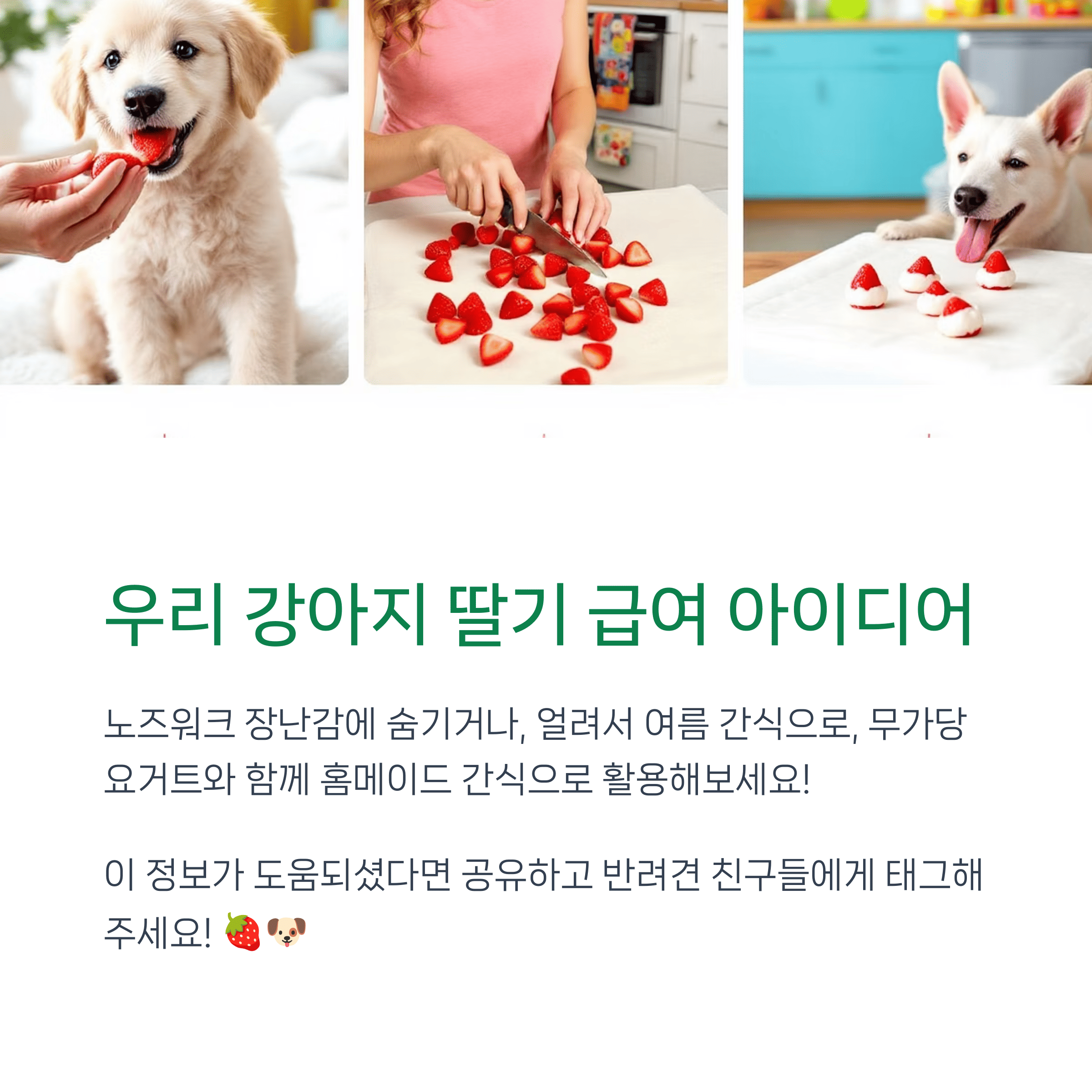 이 궁금증을 해결하기 위해, 딸기의 안전성과 급여법을 정리해봤어요.